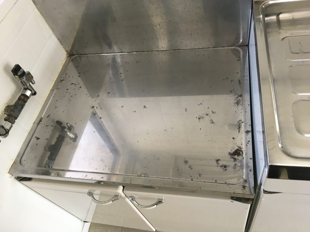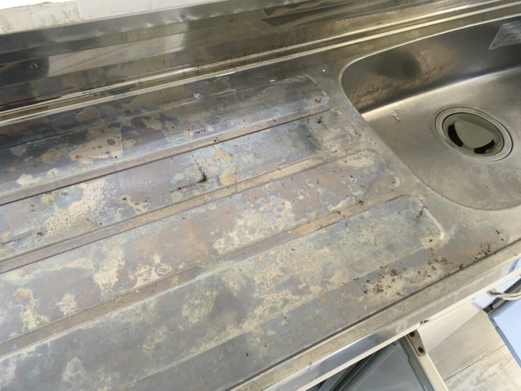 管理人様曰く、エアコンは一度も清掃したことがないとのことで、かなり年季の入った状態です・・やりがいがあります!その他キッチンシンク、ステンレス部分のキズや腐食具合も激しく、鏡面磨きに近いくらい磨きあげましたが・・・わかってはいたものの、薄くなっただけですね(^_^;)油汚れや錆などの「汚れ」はお掃除でおとせますが、素材そのものの「劣化や腐食」を再生させる事はお掃除での対応はむずかしくなってきます。このような状態になる前に、日頃の定期的なメンテナンスが大切ということですね。