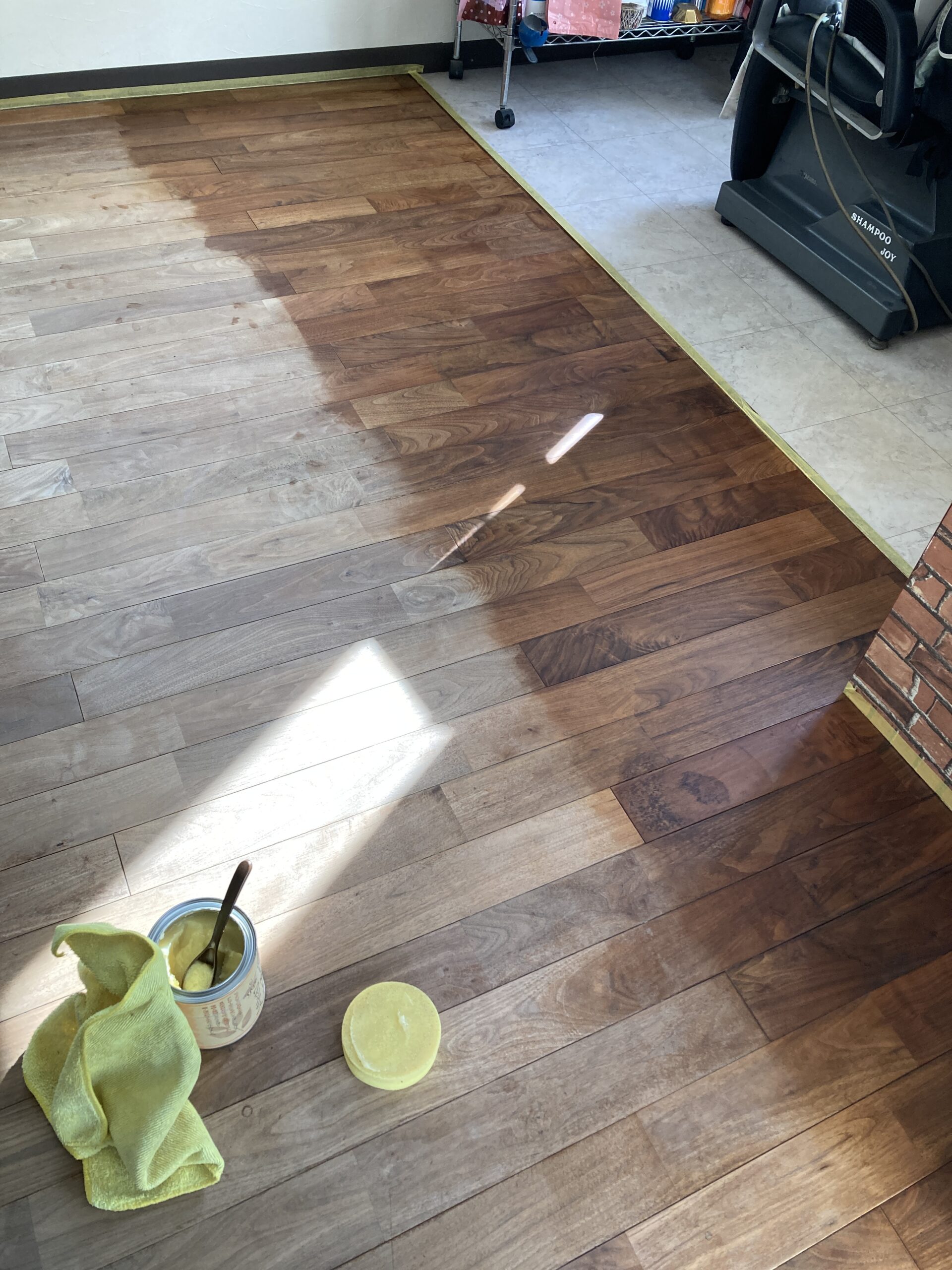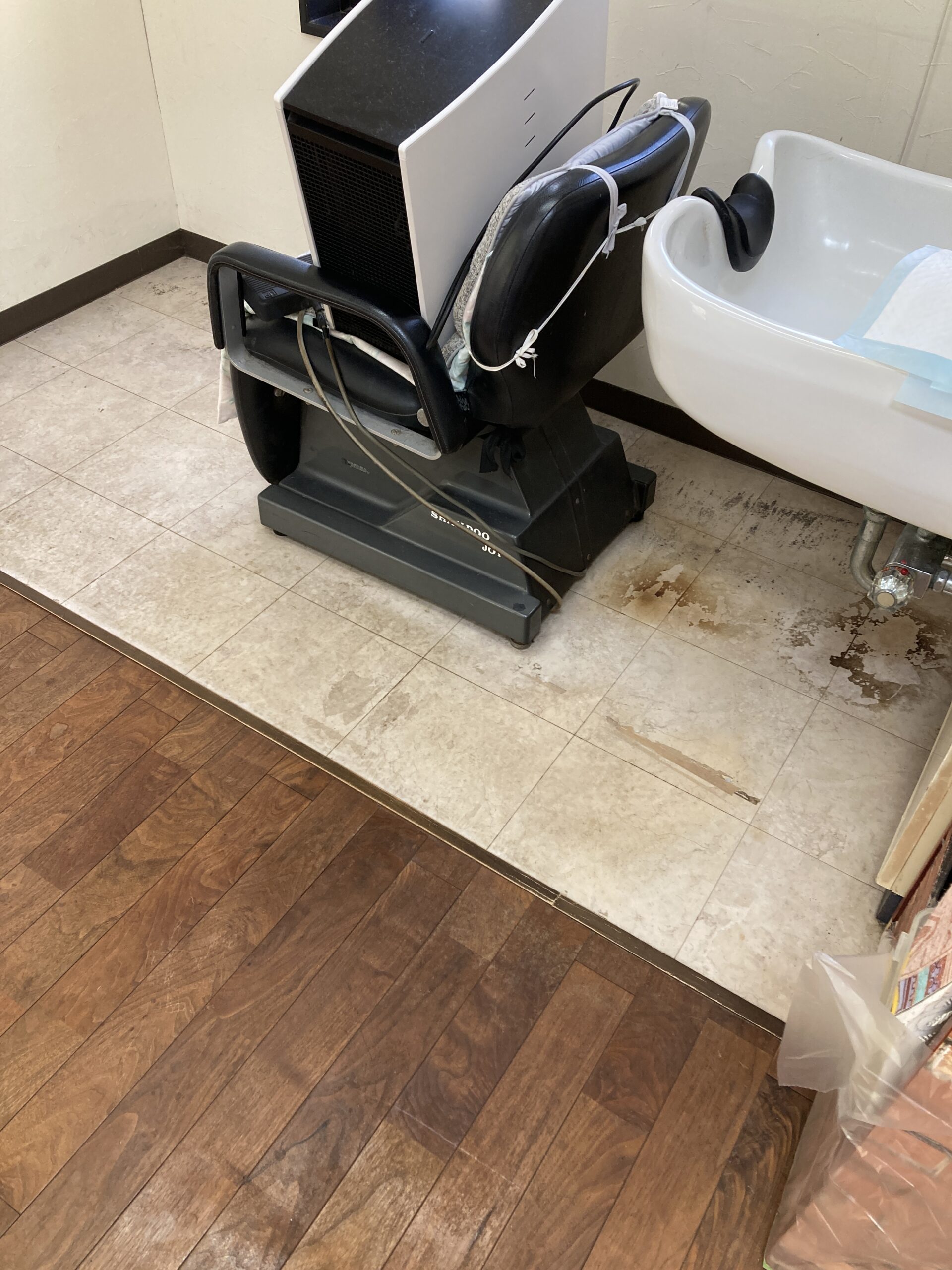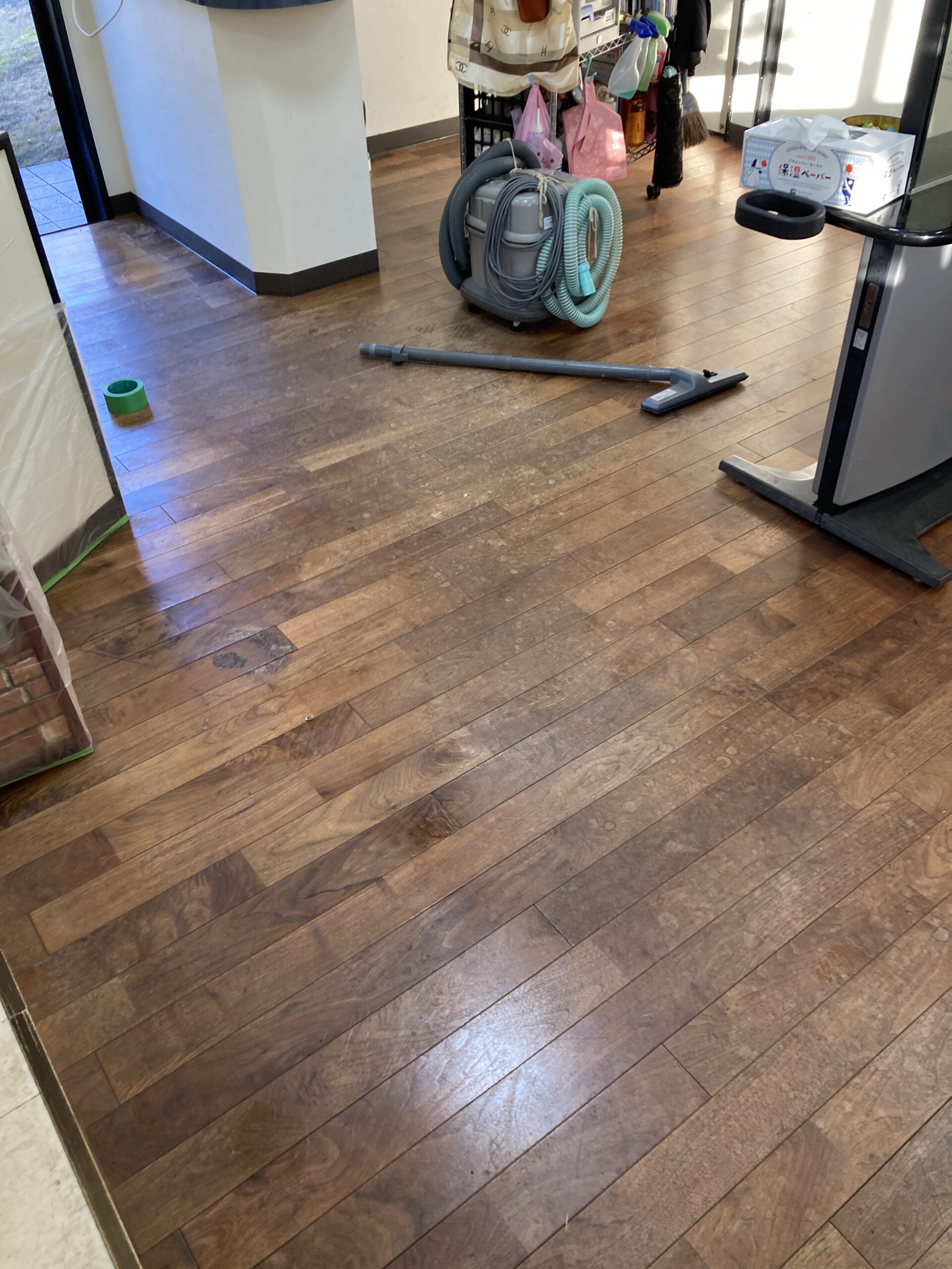 先日、仕事上だけではなくプライベートでもご贔屓にしてくださっているお客様からお声がけがあり、お客様のご実家と隣接したお母様が経営されている美容室の床(無垢フローリング)を綺麗にしたいとのご相談をいただきました。
